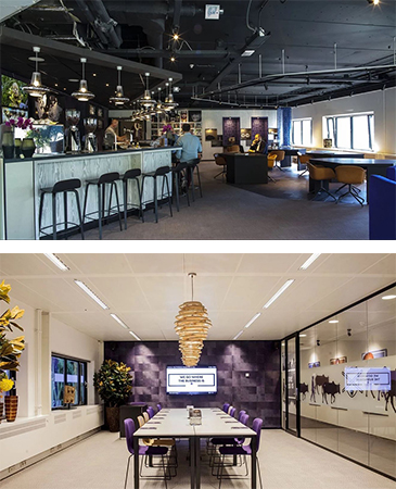 The space offers modern décor and scenic canal views. Meeting rooms of all sizes are fully equipped for freelancers and teams.