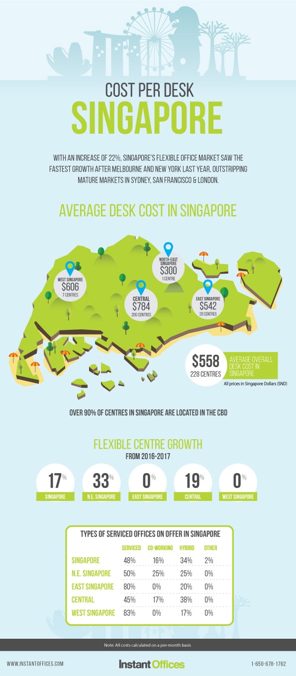 Singapore’s flexible office market grew by 22% last year, outstripping the growth of mature markets in Sydney, San Francisco and London, making it the third fastest growing market after Melbourne and New York. Desk rates are set to increase as demand continues to grow, but with an average desk cost of $558 in Singapore, businesses are easily able to secure office space in some of the most coveted areas of this key global market.