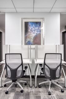 The business center occupies the third and fourth floors of a 26-story building and is hallmark of luxury, modern design featuring 64 fully-furnished office suites ranging in size from a single individual space to larger team rooms, two state-of-the-art meeting rooms, a designer reception area, an interior staircase and break room with a fully-stocked pantry. The workspace also boasts a great window line with natural light and high ceilings. A luxuriously decorated reception area welcomes the clients to the modern, high-tech office suites and conference facilities, and is guaranteed to impress the most discerning clientele.
