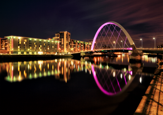 Situated on the banks of the River Clyde, Glasgow is located in West Central Scotland, just under 50 miles west of the capital, Edinburgh.