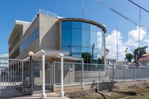 This location is unrivaled in the region and strategically situated on the delta of the Demerara River and Atlantic Coast at the center of Georgetown's business and diplomatic district. The development comprises 100 executive hotel suites and over 180,000 square feet of Grade A commercial offices. Clients of the serviced offices enjoy such additional benefits as membership at the hotel's health club and fitness facilities, including pool and tennis courts, preferred hotel room and dining rates (fine dining at the Aura Sky Lounge and Fusion Restaurant), and unlimited parking. The on-site conference room and meeting room facilities can accommodate 200 people with on-site catering.