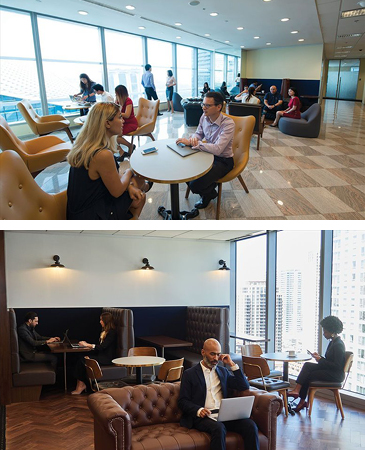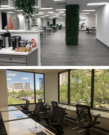 The coworking space is located in an iconic and prestigious office building that is situated in the centre of downtown Houston, Texas. The workspaces and communal areas are all exquisitely furnished.