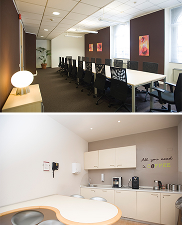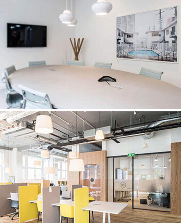 This shared office space includes a selection of private offices as well as communal working areas. The interior is stylishly furnished, while the work environment is pleasant and friendly. There is also a selection of meeting rooms, break areas and training rooms.
