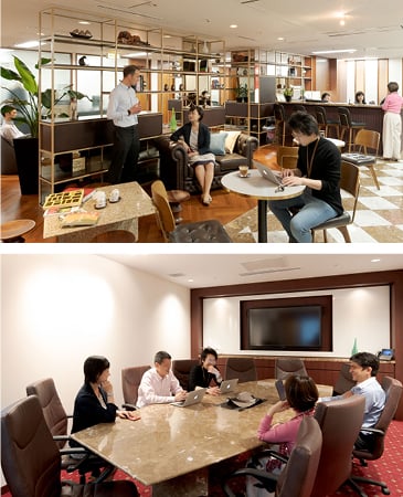 This cowrorking space is a landmark building of Hibiya, offering panoramic views over Hibiya Park and Tokyo Tower.