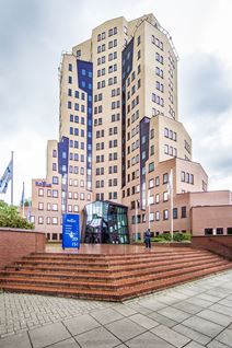 Dit business center is een absoluut icoon in zakelijk Amsterdam Sloterdijk. Omdat het een van de vijf hoogste gebouwen is in Amsterdam kan je er gewoon niet omheen. We bieden hier verschillende kantoor oplossingen aan. Allereerst is daar ons full-service concept en daarnaast bieden we ook traditionele kantoorruimte aan. Op de begane grond vind u een groot restaurant. Dit is niet alleen een lunchroom, maar kan ook gebruikt worden als flexplek of om gasten te ontvangen in een wat meer informele setting. Bovendien is er ook een indoor gym beschikbaar welke vrij te gebruiken is voor huurders.